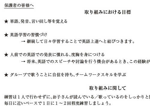 クラス内で、年に数回行うミニ発表会に向けての練習に向いています。