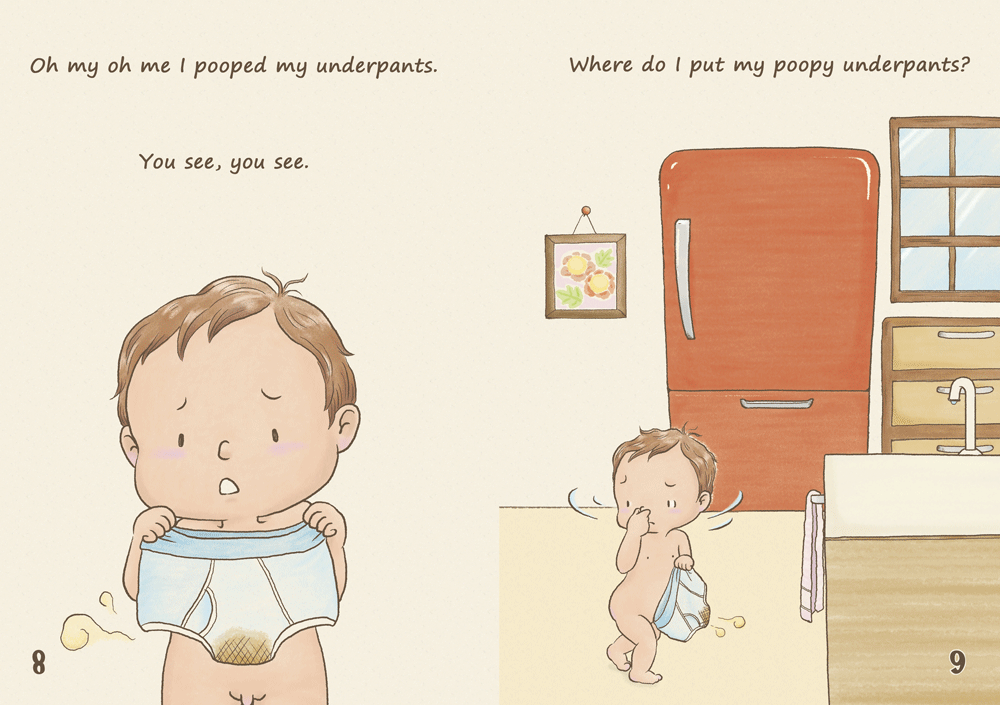 Jonathan has become three years old. He gets a nice new pair of underpants. He loves them. But in all the excitement, he poops in his underpants. What should he do with his poopy underpants?